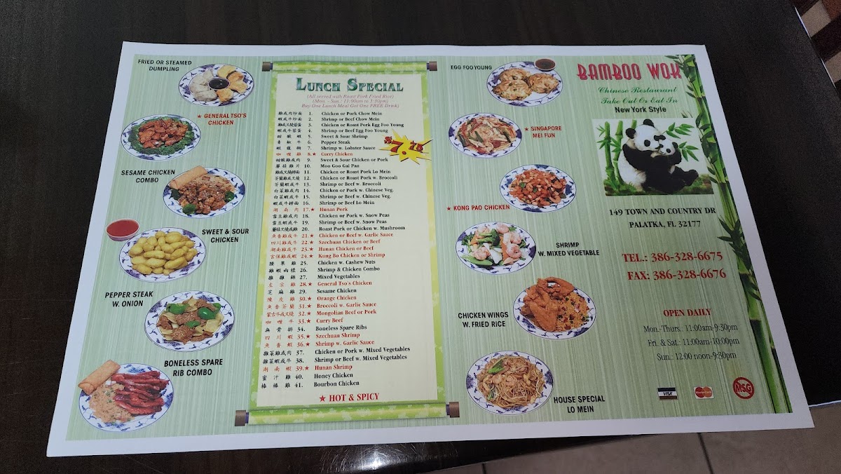 The menu at Bamboo offers a straightforward, comforting selection of classic Chinese and Asian dishes that fit well with its inviting, casual atmosphere. Whether you're stopping by for a quick lunch or a relaxed dinner, you’ll find familiar favorites like chow mein and chop suey prepared with fresh ingredients and balanced flavors.